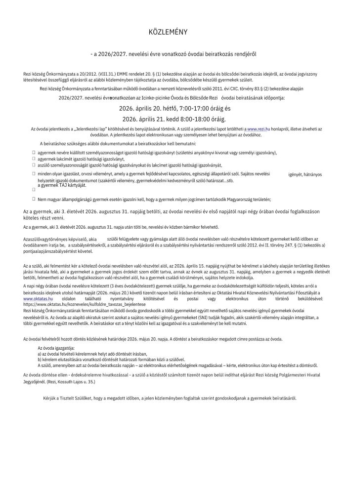 Rezi Község Önkormányzata Hivatala